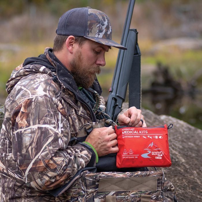 • Waterproof first aid kit designed curated for hunters and fishers. Enough supplies to support two people for a long weekend in the backcountry.