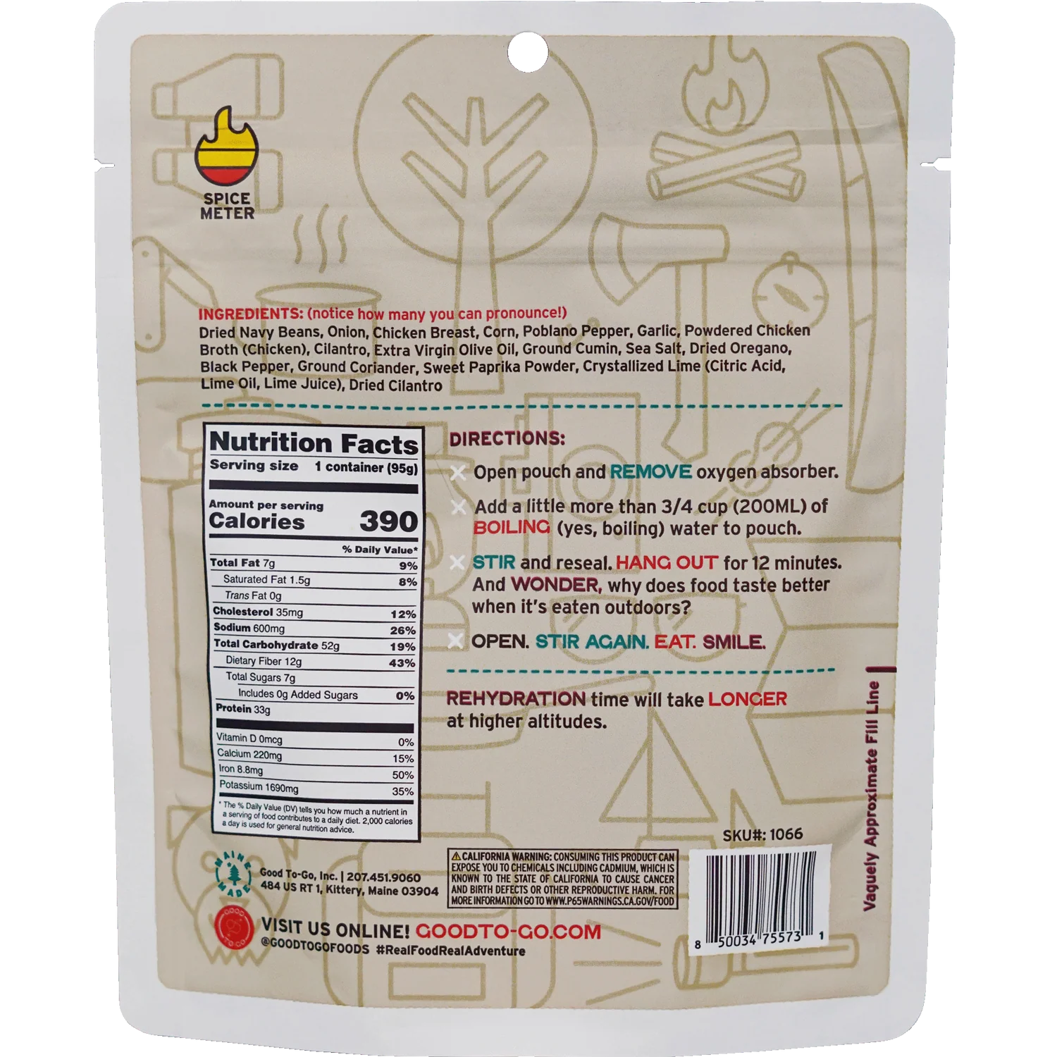 • Stay fueled in the back country with this Good To-Go Hydrated meal!