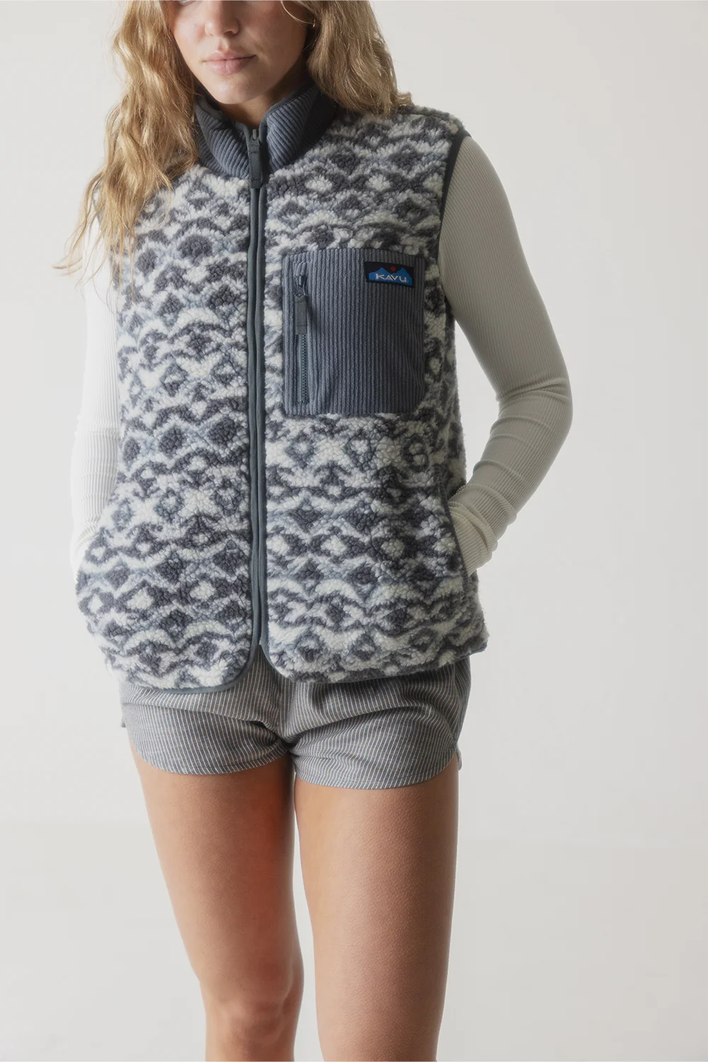 NEW! Zip it up with the Ozette. This lightweight sherpa fleece vest brings breezy warmth with bold prints and a patched-on chest pocket that pops. Layer it over a tee for cool mornings, camp nights, or anywhere else your KAVU day may take you.